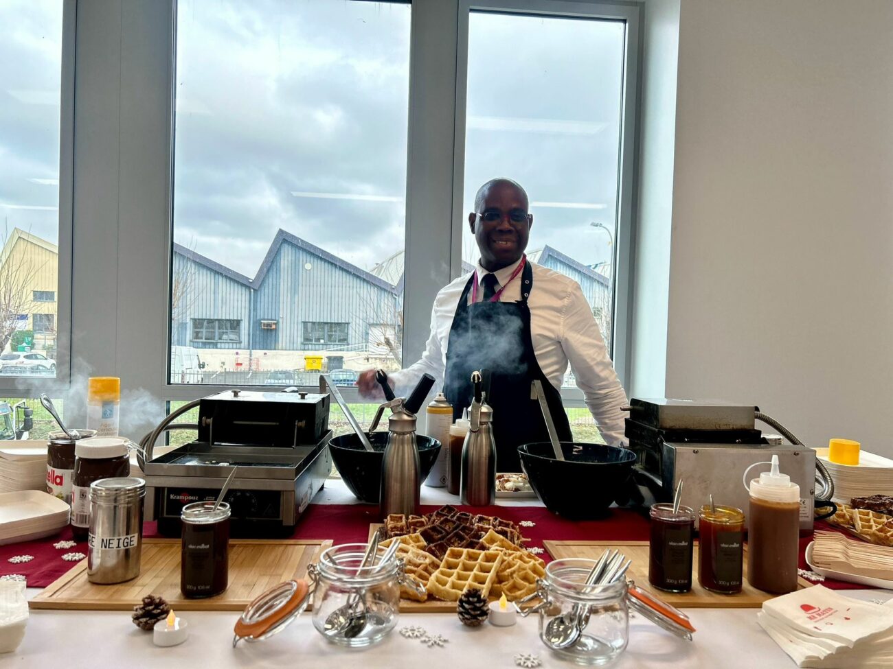 Pour les arbres de Noël, nous mettons en place des stands conviviaux comme les animations crêpes ou gaufres, très appréciées pour leur ambiance chaleureuse.